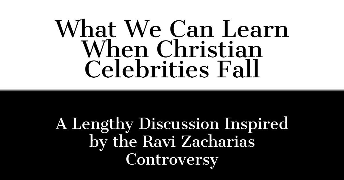 The goal of this discussion hasn’t been to examine the sin of a single person. The years Ravi Zacharias spent making a mockery of Christ was the catalyst to writing these articles, but the topics I’ve discussed are meant to give individuals a way to think through everything through a biblical worldview, and hopefully challenge a few people to examine their own thinking. Above all, I didn’t want such a shocking revelation to be wasted on our outrage at an individual when there is so much that the fall of a Christian celebrity can teach us in our own lives.